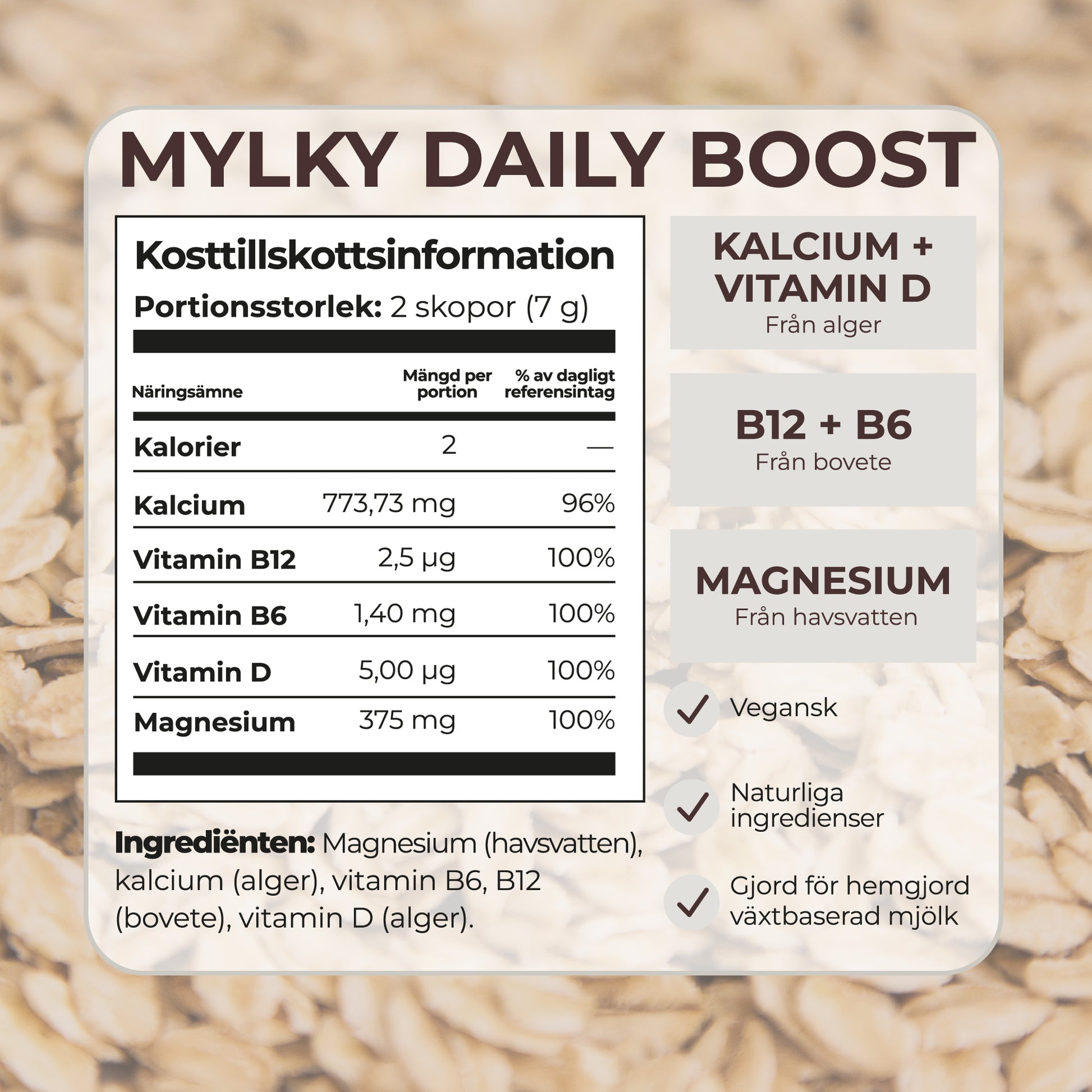 Tillsätt kalcium, magnesium, B6, B12 och D3 till din hemmagjorda mjölk på bara några sekunder.
